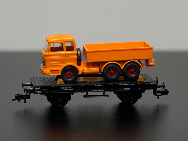 Fleischmann 5219 H0 Platte wagen met Mercedes vrachtwagen in OVP